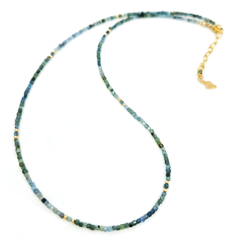 Sparkly green Tourmaline Gemstones Necklace with 14k Gold Filled beads and clasp. Perfect for wearing by itself or layered with other necklaces.