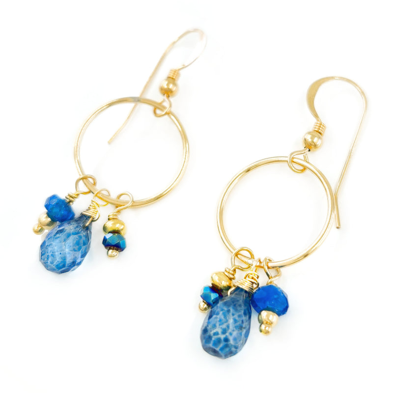 Round 14k Gold Filled Earrings with Faceted London Blue Topaz and Apatite Gemstones