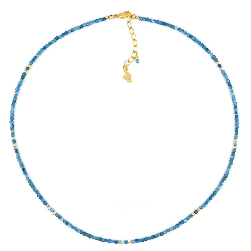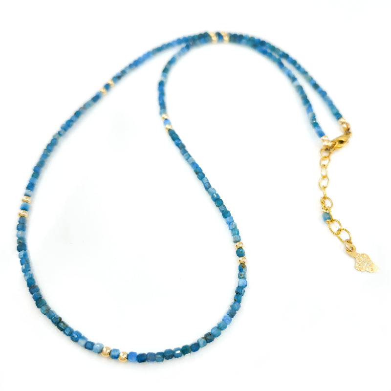 Sparkly bright blue Apatite Gemstones Necklace with 14k Gold Filled beads and clasp. Perfect for wearing by itself or layering.