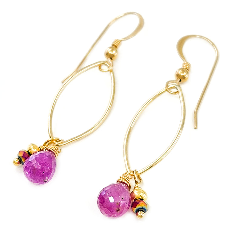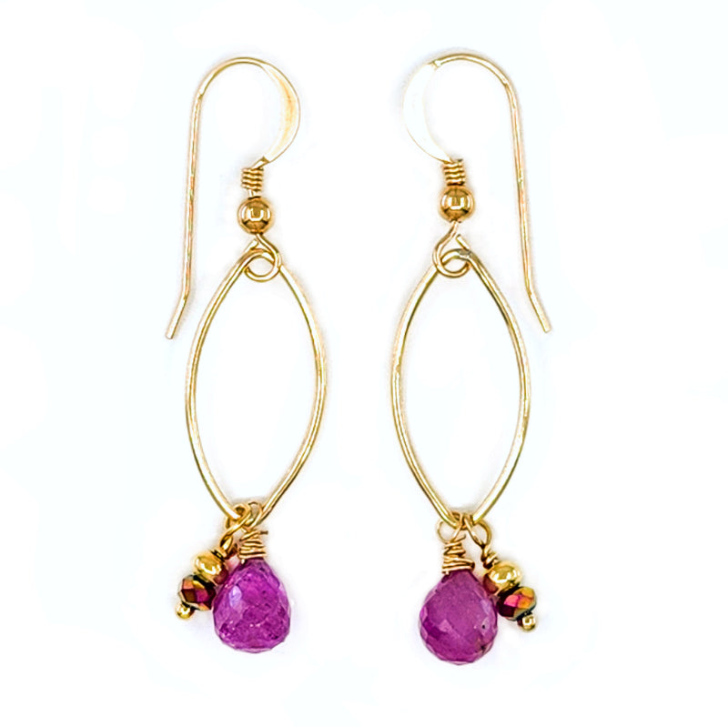 Almond Shaped 14k Gold Filled Earrings with faceted pink Sapphires
