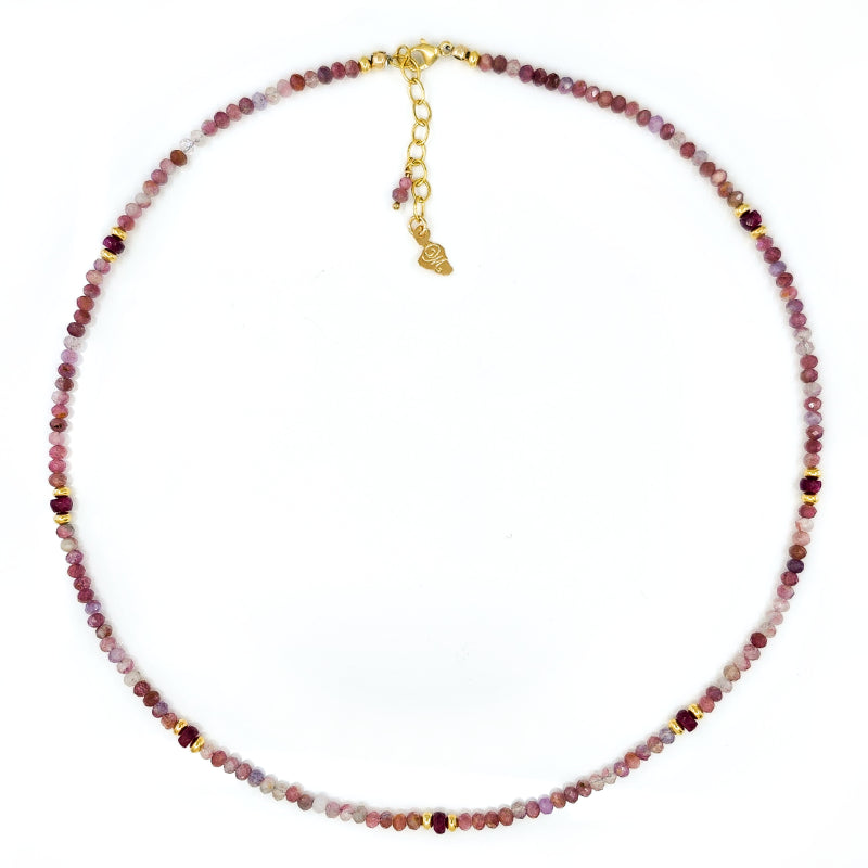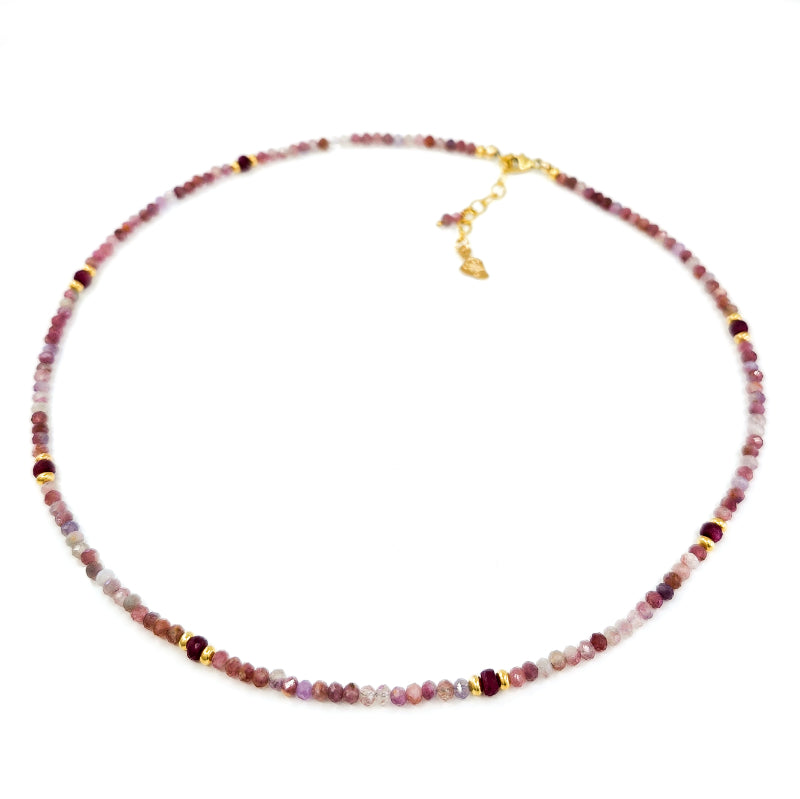 Faceted Pink Tourmaline Gemstones Necklace with Rubies and 14k Gold Filled Beads. Perfect for wearing by itself or layering with other necklaces.