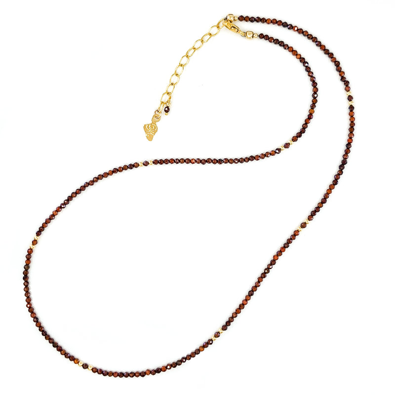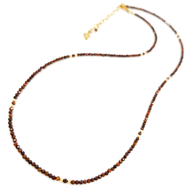 Sparkly dark red color Cubic Zirconia beaded Necklace with 14k Gold Filled Accent beads and clasp. Perfect for wearing by itself or layered with other necklaces.
