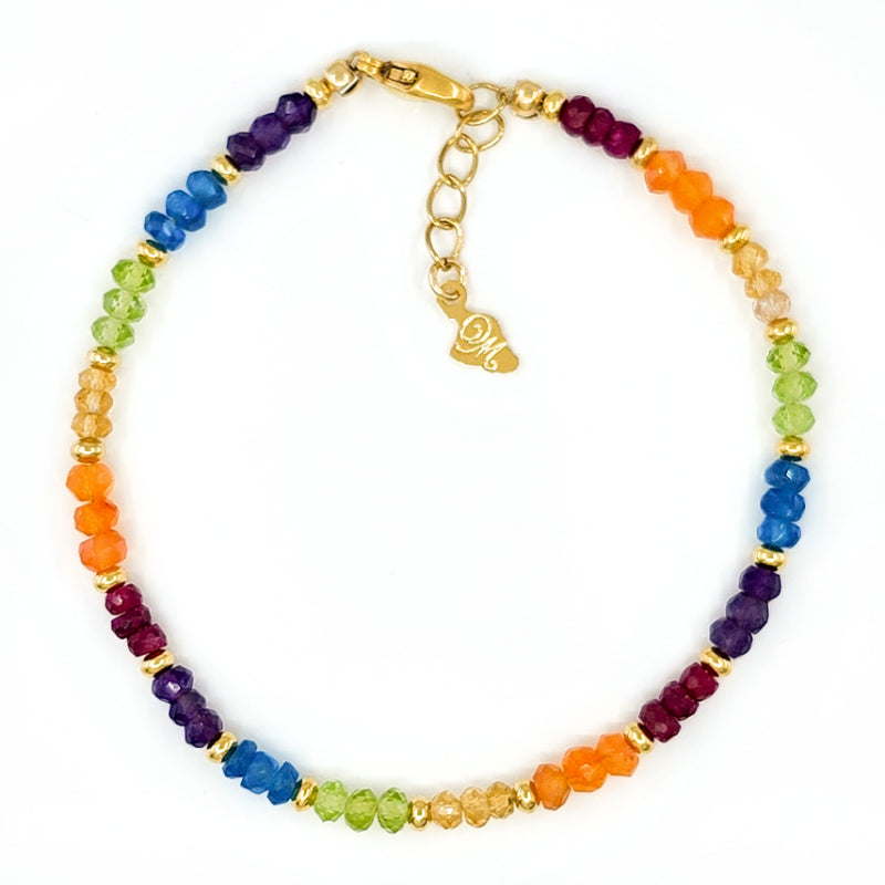 Rainbow gemstone jewelry with amethyst, apatite, citrine, peridot, ruby, and 14k gold filled beads.