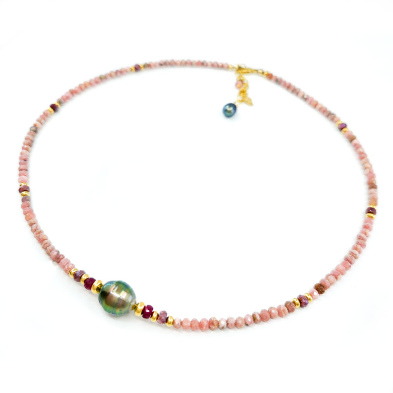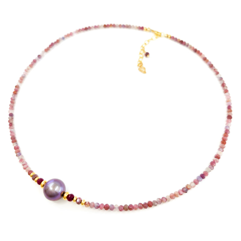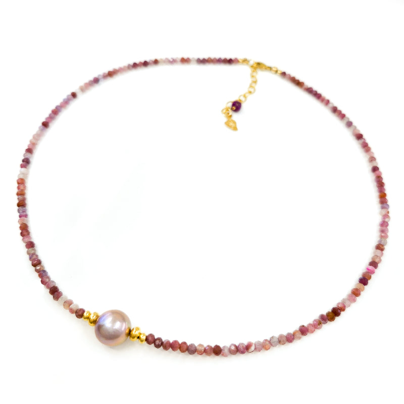 Pink Edison Pearl, Pink Tourmaline, Ruby & 14k Gold Filled Necklace, Bracelet & Earrings